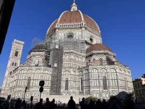 Leisurely first-rate breakfast before donning our walking shoes for an informative and lovely walking tour of Florence. From the Accademia with Michelangelo’s “David” to Giotto’s Bell Tower and Brunelleschi’s dome which is the largest masonry dome ever built and it coverages the Cathedral.