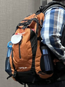 Opportunity No.3. I saw this elderly gentleman in the JFK airport in New York who had a pilgrimage shell on his backpack. Since I’ve been to Santiago de Compostela Spain many times, I recognized it as a symbol of having walked the El Camino, the pilgrimage way to the Tomb of St. James. So I stopped him and we had a nice talk. I encouraged him on his next leg of the journey and said “God bless you!”
