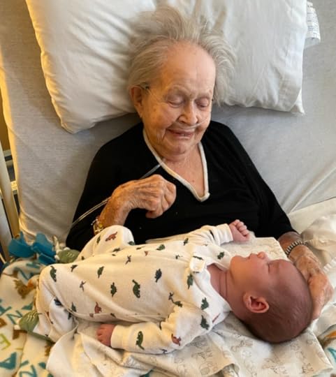 My daughter took her new son over to visit my mother who is now over 100 years old. My mom sat for 1/2 hour holding and smiling at little John Paul as he slept in her arms.