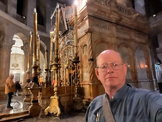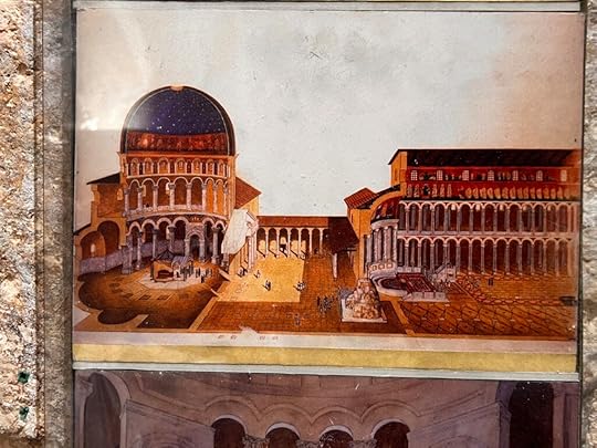 Here are three illustrations of the church from those early years—very different from its appearance today. I took these pictures from the aged pictures in the sacristy of the Holy Sepulchre.