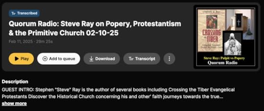 The interview starts at the 3:00 minute mark. He introduces me as Steve Ray “the Papist”.