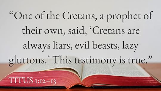 “One of the Cretans, a prophet of their own, said, ‘Cretans are always liars, evil beasts, lazy gluttons.’ This testimony is true.” (Titus 1:12-13)