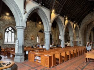 Celebrated Mass in the Trinitarian Church in Adare. We stepped back in history in this church, which was an Augustinian Catholic Abbey built in 1316. Later it was confiscated by the protestant church of Ireland. But it came back into the hands of the Catholics, who restored to its original beauty and we had Mass there today with the thousands of masses that have been celebrated there over the centuries.
