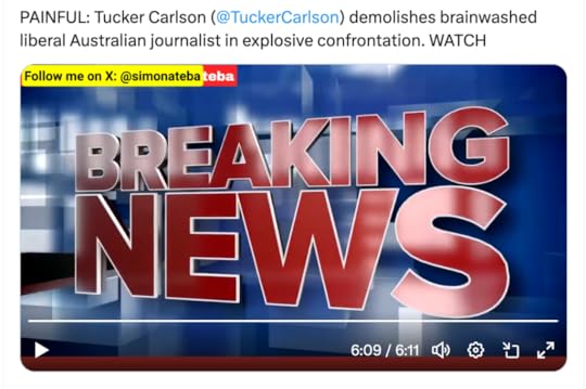 This short video clip of Tucker Carlson exposing and shaming an Aussie reporter is just too good.