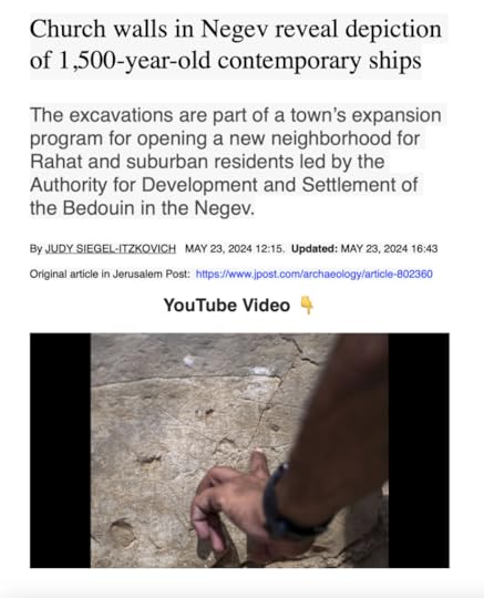 Interesting article of 4th century drawings of pilgrimage ships arriving in the Holy Land. The port was in Gaza and the huge church where the pilgrims first arrived was in Rafah in the Negev Desert in Israel.