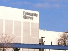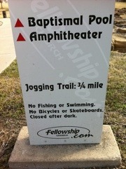 I was puzzled. Why a baptismal pool in a commercial park? I looked carefully at the large building to the right which appeared to be a large office building – but surprise! it was a large mega-church with a sign "Fellowship Church."