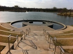 Today I took off running through a commercial area behind the hotel. I discovered a nice jogging trail through the woods so I swung onto the trail and headed through the trees. Soon I came into the open to see a beautiful lake. A sign caught my eye. It had an arrow pointing to "Baptismal Pool." I kept running.