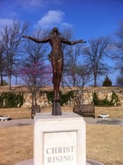 I continued running around the next curve and stopped again. There in front of my eyes was was a big outdoor statue. I took a double-take, blinked and looked again. Yup, it was a statue! A statue of Jesus ascending to heaven!