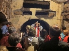 After a six course lunch at Cecilia Metella Restaurant on the Via Appia we toured the Catacombs of Callixtus and celebrated Mass deep under ground.