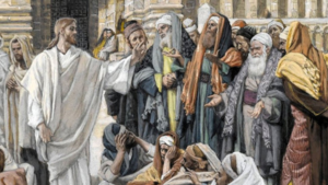 John 10:30–33: “The Father and I are one.” The Jews again picked up rocks to stone him. Jesus answered them, “I have shown you many good works from my Father. For which of these are you trying to stone me?” The Jews answered him, “We are not stoning you for a good work but for blasphemy. You, a man, are making yourself God.”