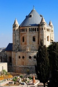 Abbey of Dormition on Mt. Zion where Mary fell asleep in ChristThe professor told us a story of his visit to Israel years ago. While on Mount Zion at the cenotaph tomb of King David and the Abbey of the Dormition of Mary. The group was Jewish and the guide was saying, “This is the site of David’s Tomb.” At Mary’s Dormition he said, “This is where the Catholic’s have a tradition that Mary fell asleep and went to heaven from here. Who knows.”