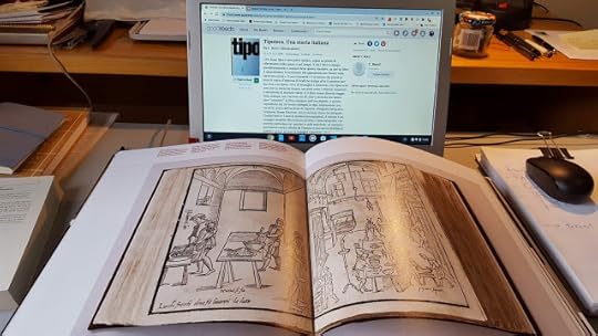 Sono figli di una tradizione da più di cinquecento anni, da Gutenberg in poi, per diffondere le dantesche "virtute e canoscenza". A distanza di poco meno di tre secoli la tradizione continua, in maniera abbastanza diversa, in un presente che era futuro per Volpi e che è presente per noi oggi con il libro di Harari. Un libro che non ho ancora finito di leggere e che richiede un impegno ben diverso di quello che lo accompagna nella foto.