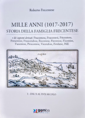 P. S. Questo blogger desidera ringraziare Michele Frecentese della frazione di Episcopio di Sarno, con il quale ha il piacere di essere amico, per avergli fornito tutte le informazioni utili alla stesura di questo post. A lui ed alla sua famiglia spetta il compito di conservare degnamente la continuità sarnese del nome e la identità della famiglia per il secondo millennio.
