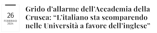 Il significato di ogni cosa lo si trova certamente in quelle che molti chiamano “coincidenze significative”. La vita ne è piena e chi scrive ha avuto modo di sperimentarle e scriverne diverse volte, come in questa occasione. Oggi me la dà il grido di allarme che si rileva dal titolo di questo “urlo” con il quale una rivista online ha titolato la notizia. Che poi tanto nuova non è. Si tratta della solita, preannunciata, prevista, verificata e sopportata invasione della lingua inglese.
