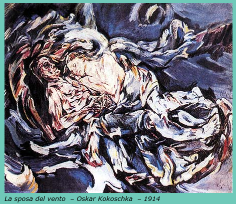 Una delle opere più famose di Kokoschka è il dipinto intitolato “La sposa del vento” (Die Windsbraut). Questo quadro, realizzato nel 1913, rappresenta una visione tumultuosa e simbolica di una sposa in preda alla follia.
