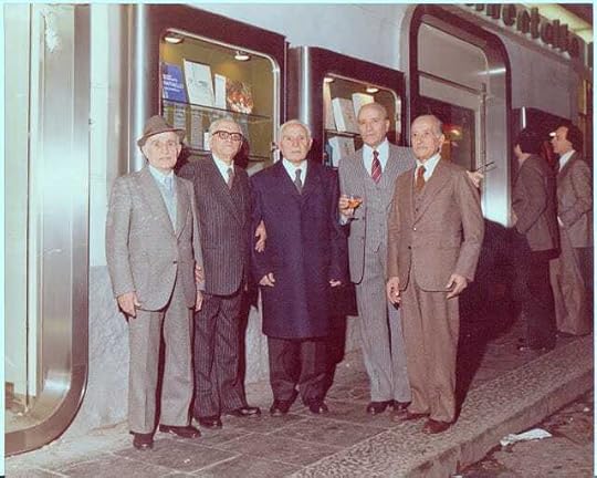 Mai come in questo caso, osservando questa foto, ho capito il senso del successo dei così detti “social networks”: vivere la vita e ricordarla con un obiettivo per documentarla. La parola “obiettivo” in questo caso ha un doppio senso: quello che prevede l’impiego della macchina fotografica e quello che sta ad indicare il senso, la ragione, lo scopo di fare una determinata cosa. In questo caso si tratta di esternare i miei sentimenti di tristezza per la scomparsa di una persona che appare in questa immagine, l’ultimo di cinque fratelli, il primo a destra, di nome Felice. Cinque figure umane ritratte sul marciapiede di una nota strada di Napoli alla fine degli anni sessanta, davanti ad una delle tante librerie che la costellavano, di fianco all’università. Un luogo che fa parte non solo della storia di Napoli ma anche di quella che fu la vita di queste cinque persone che mi appartennero. Così come io appartengo alla loro.