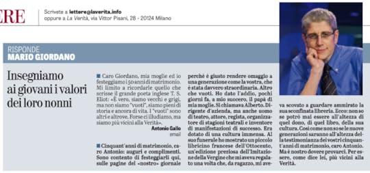 Un vecchio proverbio del sud dice che “La migliore parola è quella che non si dice”… Il pessimismo della ragione mi spinge a tacere, l’ottimismo della volontà a scrivere e ringraziare Mario Giordano per esserci insieme a “La Verità”.