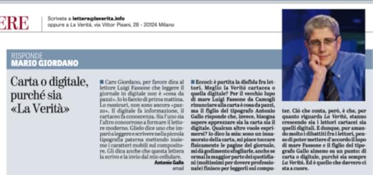 Il tutto si muove in un ambito quanto mai ampio perchè tocca ogni aspetto della condizione umana: la comunicazione. Quel lettore al quale si riferisce la mia lettera si lamentava del fatto che stanno scomparendo le edicole e diminuiscono i lettori. Chi legge il giornale da un pc o un cellulare, è un “pazzo”, era la sua conclusione.