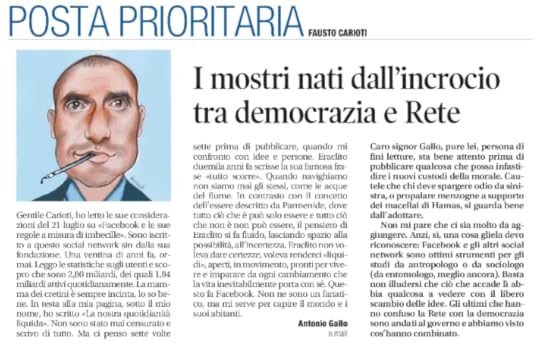 Eraclito non voleva dare certezze, voleva renderci “liquidi,” aperti, in movimento, pronti per vivere e imparare da ogni cambiamento che la vita inevitabilmente porta con sé. Questo fa FB. Non sono un azionista di FB e non ne sono un fanatico, ma mi serve per capire il mondo e i suoi abitanti.