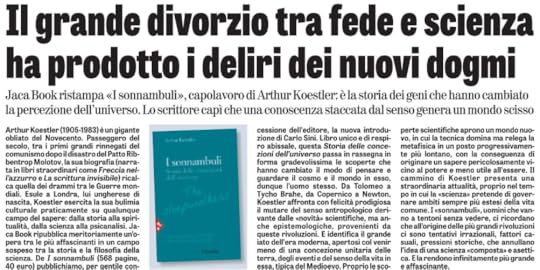 Un libro che si legge come un romanzo, ma non è un romanzo. Un libro che non è un saggio, ma tutto è tranne che lo studio di uno scienziato che vuole sapere da dove veniamo, cosa siamo e dove siamo destinati ad andare, in questo viaggio su di una “palla” chiamata Terra che ruota su se stessa, in uno spazio infinito ed incognito, senza una sola ragione precisa e senza una meta. Cosmologia, astronomia, filosofia, scienza, Arthur Koestler non è uno scienziato, un filosofo, un astronomo, è stato soltanto uno scrittore prolifico di saggi, romanzi e autobiografie. Nato in una famiglia ebrea ungherese a Budapest ma, a parte i suoi primi anni di scuola, studiò in Austria. La sua prima carriera fu nel giornalismo. Nel 1931 si iscrisse al Partito Comunista di Germania ma, disilluso, se ne dimise nel 1938 e nel 1940 pubblicò un devastante romanzo anticomunista, “Buio a mezzogiorno”, che lo portò alla fama internazionale istantanea. Sposò molte cause, scrisse romanzi e biografie e numerosi saggi perchè si sentì, come sempre tanti di noi, esseri viventi e pensanti, che non sappiamo cosa siamo, nè cosa facciamo: dei “sonnambuli”, come i protagonisti di questo libro. Naturalizzato inglese, nel 1972 venne nominato “Commander of the British Empire” (CBE). Nel 1976 gli fu diagnosticato il morbo di Parkinson e tre anni dopo la leucemia allo stadio terminale. Si è suicidato nel 1983 a Londra. Un “sonnambulo” che sapeva quello che faceva.