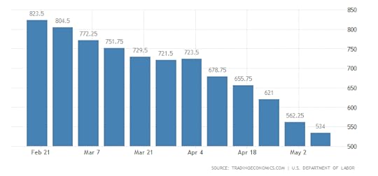 2021-04-2212:30 PM Jobless Claims 4-week Average Apr/17 651K 678.75K 692.25K 2021-04-2912:30 PM Jobless Claims 4-week Average Apr/24 611.75K 655.75K 606.5K 2021-05-0612:30 PM Jobless Claims 4-week Average May/01 560K 621K 562.5K 2021-05-1312:30 PM Jobless Claims 4-week Average May/08 534K 562.25K 526.25K 2021-05-2012:30 PM Jobless Claims 4-week Average May/15 534K 505.25K 2021-05-2712:30 PM Jobless Claims 4-week Average May/22 2021-06-0312:30 PM Jobless Claims 4-week Average May/29 2021-06-1012:30 PM Jobless Claims 4-week Average Jun/05 United States Labour Last Previous Highest Lowest Unit