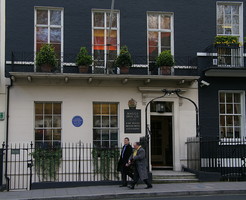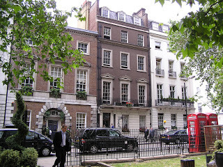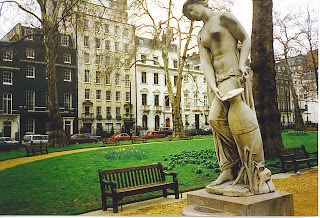 "Oh, listen . . . . . I stumbled on the most fantastic restaurant in the next street. It's called Burger and Lobster." I proceeded to regale the Hubby with all that I'd seen at the restaurant. "We'll go and look at it when we go to dinner." "Where are we going for dinner? Not lobster?" "Ye Olde Cheshire Cheese." "Oh, not that again!" said Hubby. I couldn't blame him. On our last trip to London we'd tried twice to eat at the Cheshire Cheese, finding it closed both times. Once after we'd called to make sure they'd be open and, more dreadfully, another time when we'd let the cab go and found ourselves on the deserted streets of the City after business hours with no other cabs in sight. Hubby was not best pleased. So we eventually toddled our way to the lobster joint, where we pressed our foreheads to the big plate window and watched as the people inside dug into their meals. The joint was packed. "Boy, they look good," sighed Hubby. "What do they have at the Cheesey joint?" "English food. Roast beef, bangers and mash, like that." Even as I said the words, I knew they couldn't compete with the scene before our eyes - a restaurant filled with happy, bib wearing people cracking shells and slurping melted butter to their hearts content. "I guess we should get a cab," Hubby gamely offered. "In a bit. There's something I want you to see first." Hubby turned away from the window and sighed. "What is it? Something to do with the Duke? It had better be quick, because it's freezing." "It's just down the street. You're going to like this." "Riiiiight." So off we went to Berkeley Square, which really is just down the street. I intended to show the Hubby something that I knew would be just up his alley and then jump in a cab down to Fleet Street. But you know what they say about good intentions . . . . we'd just entered the Square from Curzon Street when I was overcome with the need to begin pointing out sights of historical significance to the Husband.