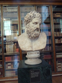 Bust of Hercules: Roman copy of  original by Greek sculptor Lysippos,said to have been found at the foot of Mount Vesuvius andpresented to the British Museum by Sir William Hamilton in 1776.