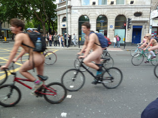 And now, another of those absurd wrenches from the sublime to the ridiculous.  Having had enough exploring in the British Museum, I started walking back to my hotel. When what should appear but another version of the world naked bike ride. In June of 2010, Kristine and I were surprised to stand in the doorway of Apsley House in front of a street full of hundreds of nude riders. All we could do was wonder what the 1st Duke of  Wellington would have thought?