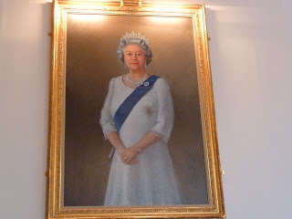 This recent picture of Queen Elizabeth II hangs in the Council Chamber, but I have to admit I preferred the earlier one below, which is not currently hanging but can be seen in the Ascot Room underneath a portrait of Queen Victoria, her great-great grandmother.