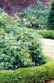 This is rose "De Meux" with a box hedge