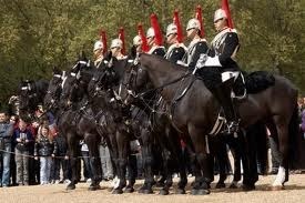 It is not easy to get these horses of uniform type and character. There are many exchanges and rejections, and it often happens that a horse sent in for cavalry work has to go to the draught, to the Artillery, or even the Transport service; so that though the remainder may not be examples of the much-talked-of survival of the fittest, they are at least representative of the not unfit. They are smart, workmanlike horses. It is absolutely necessary that a regiment should be as sound in its horseflesh as in its men. Theoretically no remounts are accepted that are not looked over on level ground, on a road, or in a large* yard, for it is easy to pass a bad horse in a field, or on a hillside, or in deep pasture, or when under cover, or in a drove. It is not safe to choose an underbred animal, immediately conspicuous by his coarse head, or thick throat, or short neck, or large, bony joints, or clumsy legs, or short pasterns, or curly in the hair of his mane or tail. The typical cavalry horse must have a small lean head, a flat, broad forehead, fine, full nostrils, a good, clean throat, thin neck, well-shaped legs, long pasterns, and straight hair, with a deep, wide chest, and short, broad back and loin. No long backs will do, for long backs do not carry weight, and short necks or croups are simply impossible for soldiering. Of course the horse has to be of the regimental colour. In the cavalry generally chestnuts are not in favour, for chestnuts usually have white, and white, except in the Scots Greys, is not desirable; neither chestnuts then, nor mealy bays, are fit for cavalry work, but roans and bays and browns, and for our Guardsmen blacks.