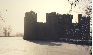 In 1970, the garden was left to the National Trust.  The moat acts as a perfect mirror in the above romantic view. In one of my several visits to Bodiam Castle in East Sussex, it was January and the moat was frozen.