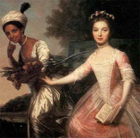 No record exists of what Dido thought of her uncle's landmark slave case. But surely some of the ramifications crossed her mind as she went about tending the chickens and what other genteel chores were hers in Kenwood, his country estate. She was born of a woman taken from a Spanish vessel by the man who ultimately sired her, Captain Sir John Lindsay of the Royal Navy, Mansfield's nephew. Her very existence in his home became a prism of attitudes of the day, some merely noting her presence as point of description, American visitors noting in surprise when she joined the family after dinner. Scholars have argued whether she was tolerated or beloved family. It was ironic that her great-uncle, in spite of his verdict, felt the need to reiterate her status as a free woman in his will, in which he also left her £500 plus £100 per year. This in addition to the £1000 her father had left her in his will. Other evidence suggests as well that she was indeed a loved family member who was treated as any other "poor relation" would have been. In 1794 she's shown to have married John Davinier, possibly a steward.