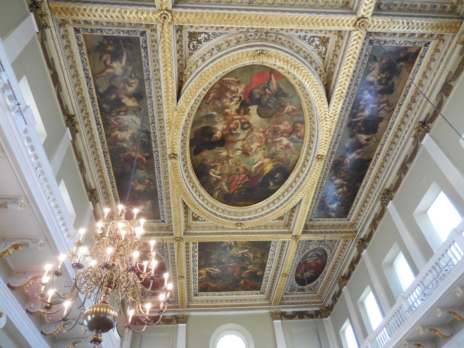The magnificent ceiling paintings are the work of Sir Peter Paul Rubens, who completed them in 1636.