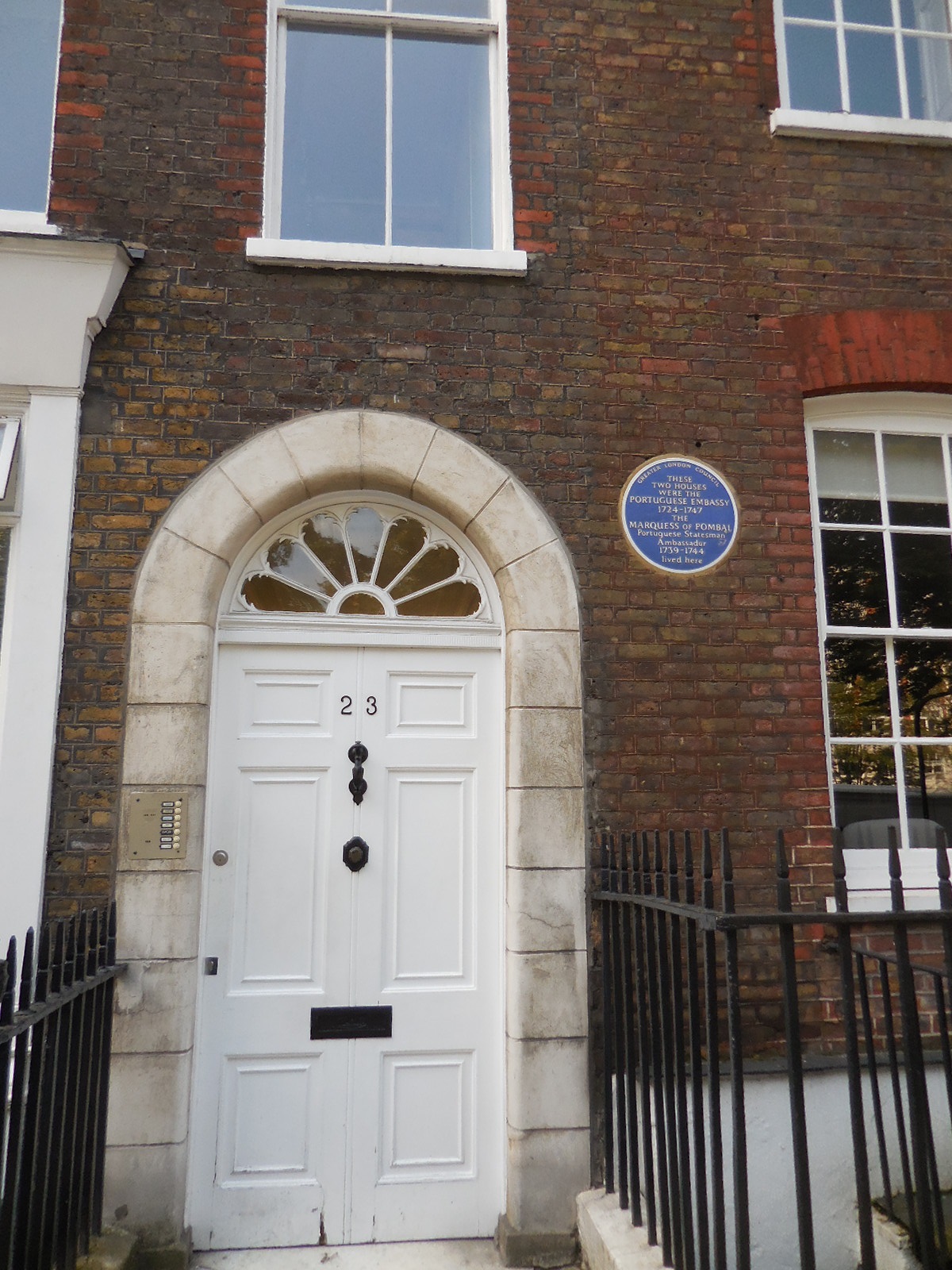 Commemorating the site of the Portuguese Embassy in the 18th C, and its most famous ambassador Marquess of Pombal.