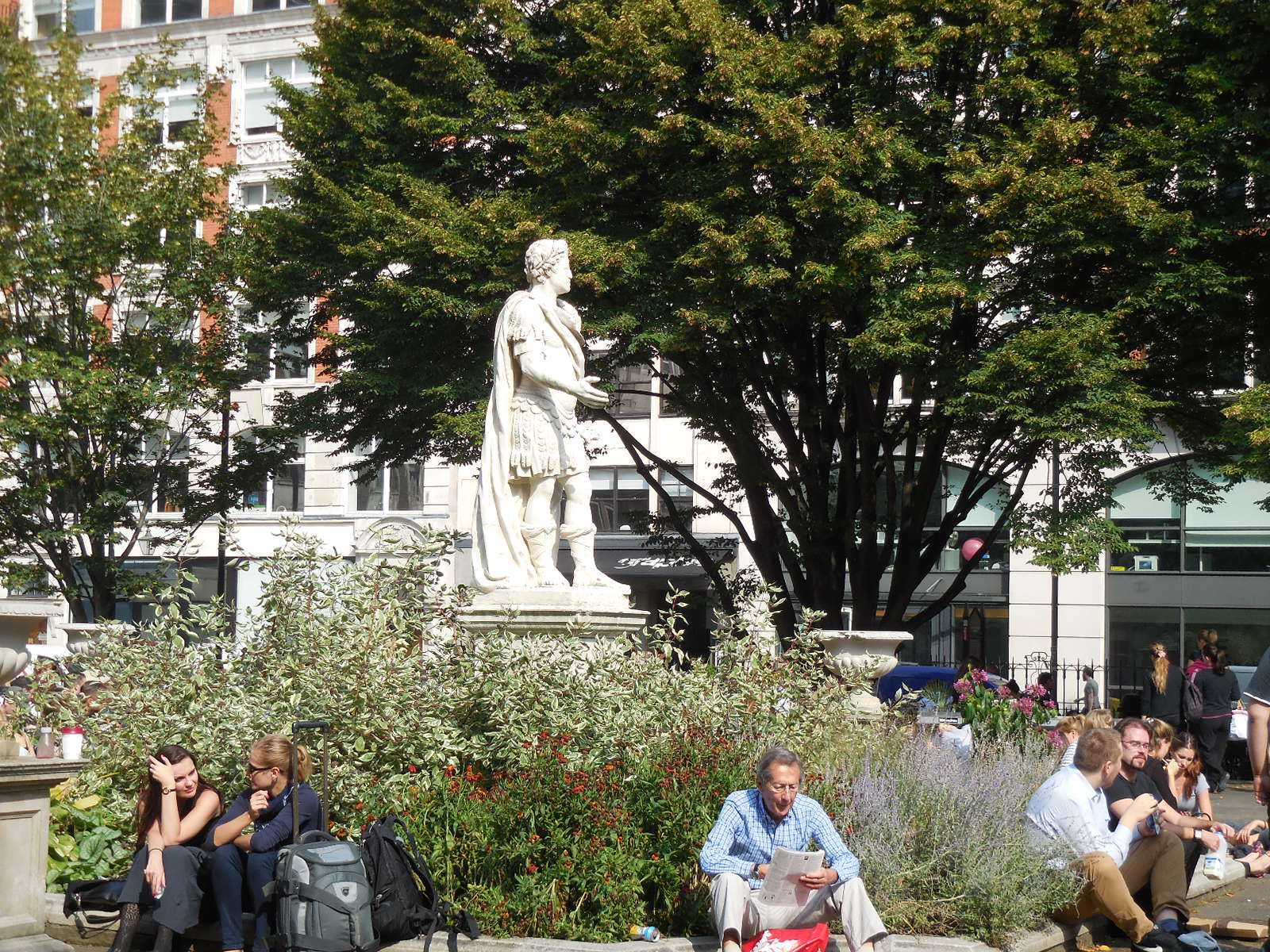 We wandered onward, to Golden Square, full of Londoners enjoying their lunch hour outside on a perfect day. Golden Square was laid out in the late 17th century and was an area occupied by many prominent individuals and families, such as the Duke of Chandos and the Duchess of Cleveland.