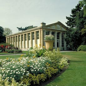 Kew Gardens (officially the Royal Botanic Gardens at Kew) originally belonged to the royal family. Frederick, Prince of Wales, (son of George II and father of George III) and his wife, Princess Augusta, had a great interest in exotic plants. Their collection is the core of today's 40,000 varieties of plants at Kew. None of Kew's hothouses survive from the Georgian period. One regency-era building, the Nash Conservatory, was built at Buckingham Palace in the design of a Greek temple; it was moved to Kew in 1836. Recently fully restored, the Nash Conservatory is used now as a school education center.