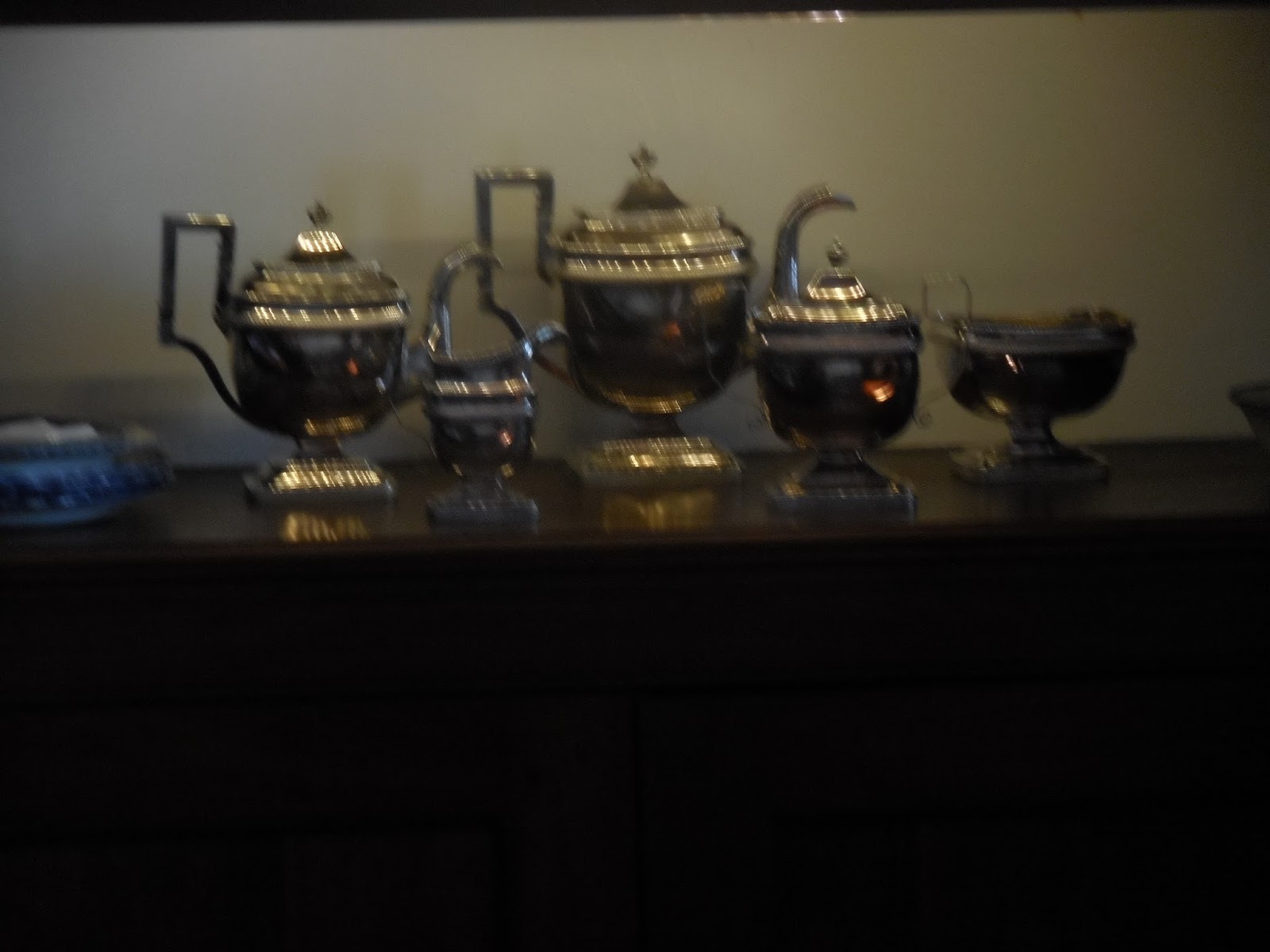 The silver coffee and tea service was made in Philadelphia with the family crest.