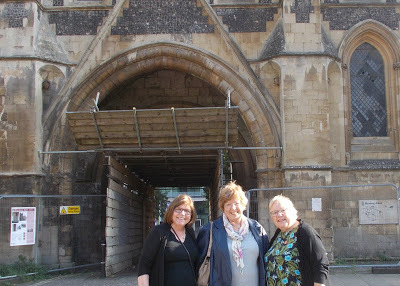 Below Diane Gaston. Beth Elliott, and Victoria in front of the Abbey Gateway.