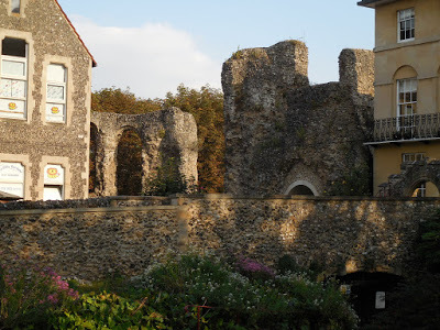 Back at our "atmospheric" coaching inn in Reading, we looked forward to meeting Regency author Beth Elliott, who very kindly agreed to take us on a walking tour of the ruins of the Reading Abbey, including the Abbey Gateway, where Jane Austen attended Madame La Tournelle's school in 1784-85.