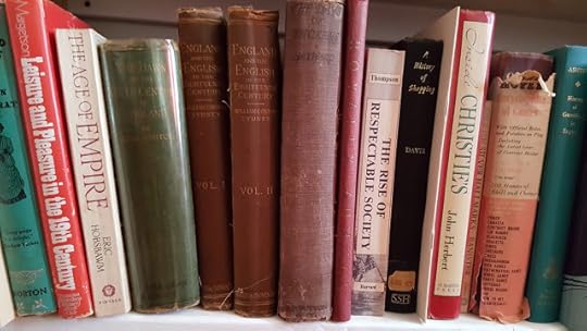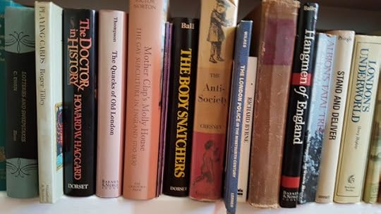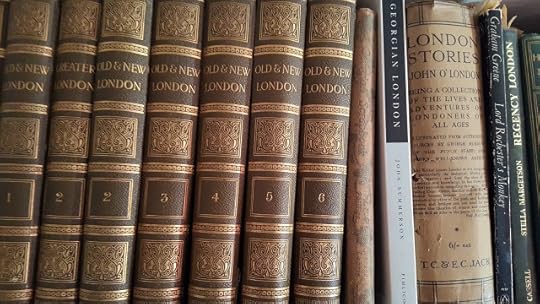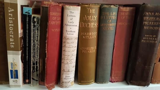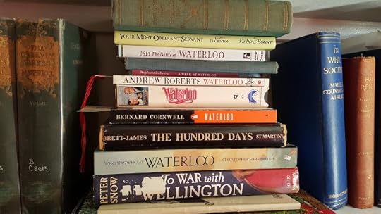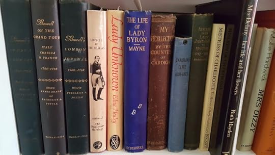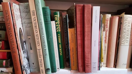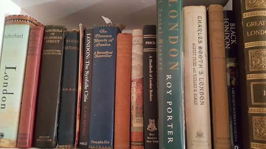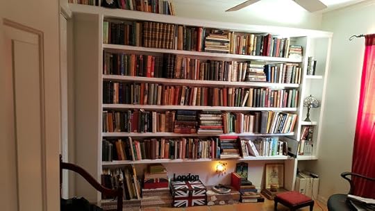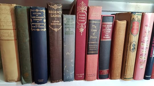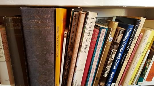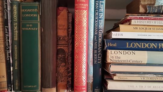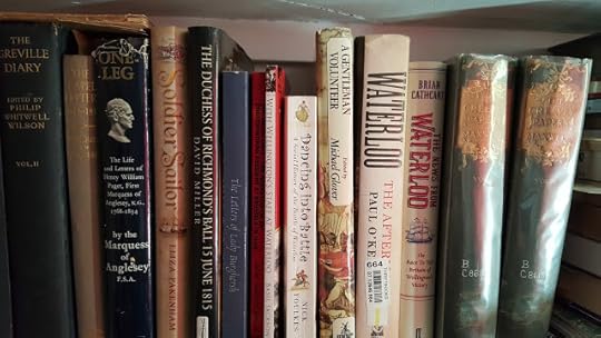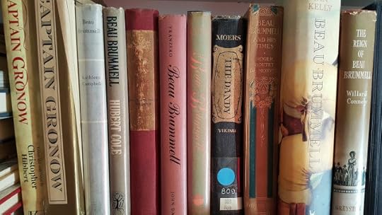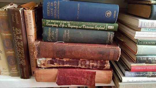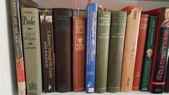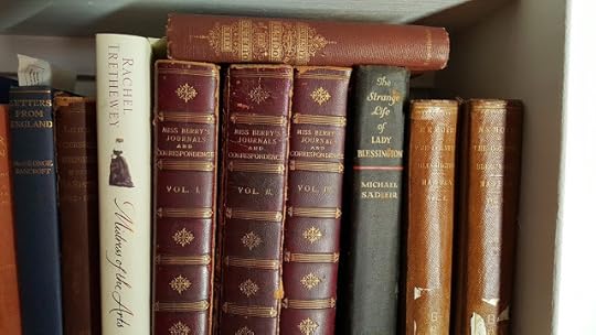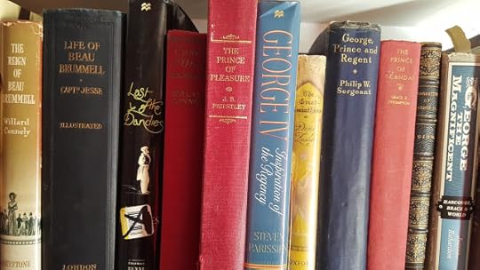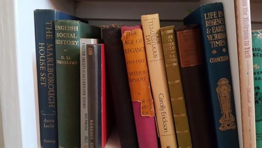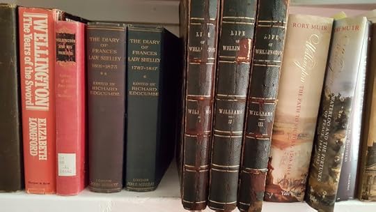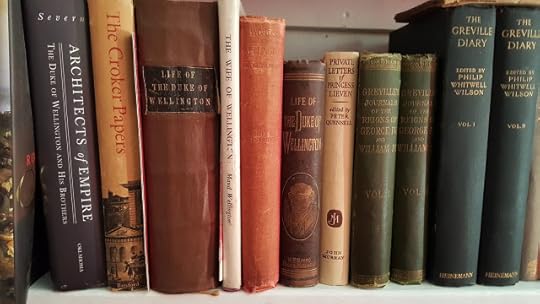 I'm happy to report that the built-in bookshelves are done and painted and my library is back where it belongs. Although most books can now be found on the internet, I'm never parting with my core library, consisting primarily of books on London, Wellington, Brummell, period diaries and letters and Queen Victoria. For those of you who have expressed an interest in browsing my bookshelves, here's a good representation of what they hold.