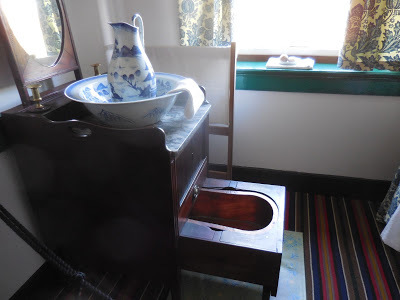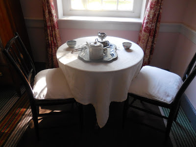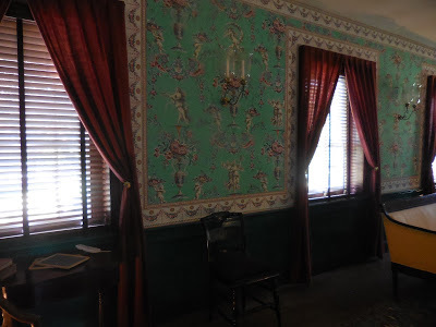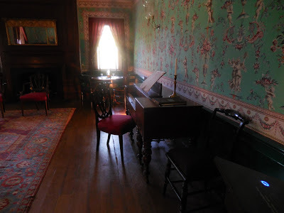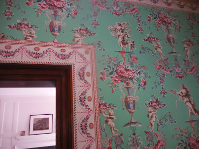 These walls of the Farm Office are painted in verdigris, which was explained as an odiferous compound in which one part was urine or excrement. Rarely used in bedroom I presume.