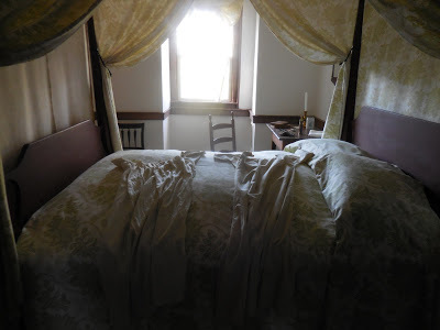 I had to admit, Hougoumont looks much improved and the massive restoration project seems to have been sympathetically done. Hhhmmmm . . . . but what would the interiors of the two bedroom guest accommodation look like? Again from the website: This simple first floor apartment in the former gardener’s cottage beside the south gates is furnished to evoke the Napoleonic era and looks out on ancient sweet chestnut trees that also witnessed the bravery and sacrifice here.