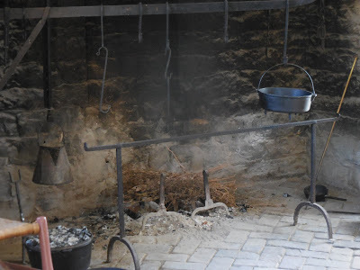 The kitchen is in a nearby outbuilding, as would have been usual in the 18th C.