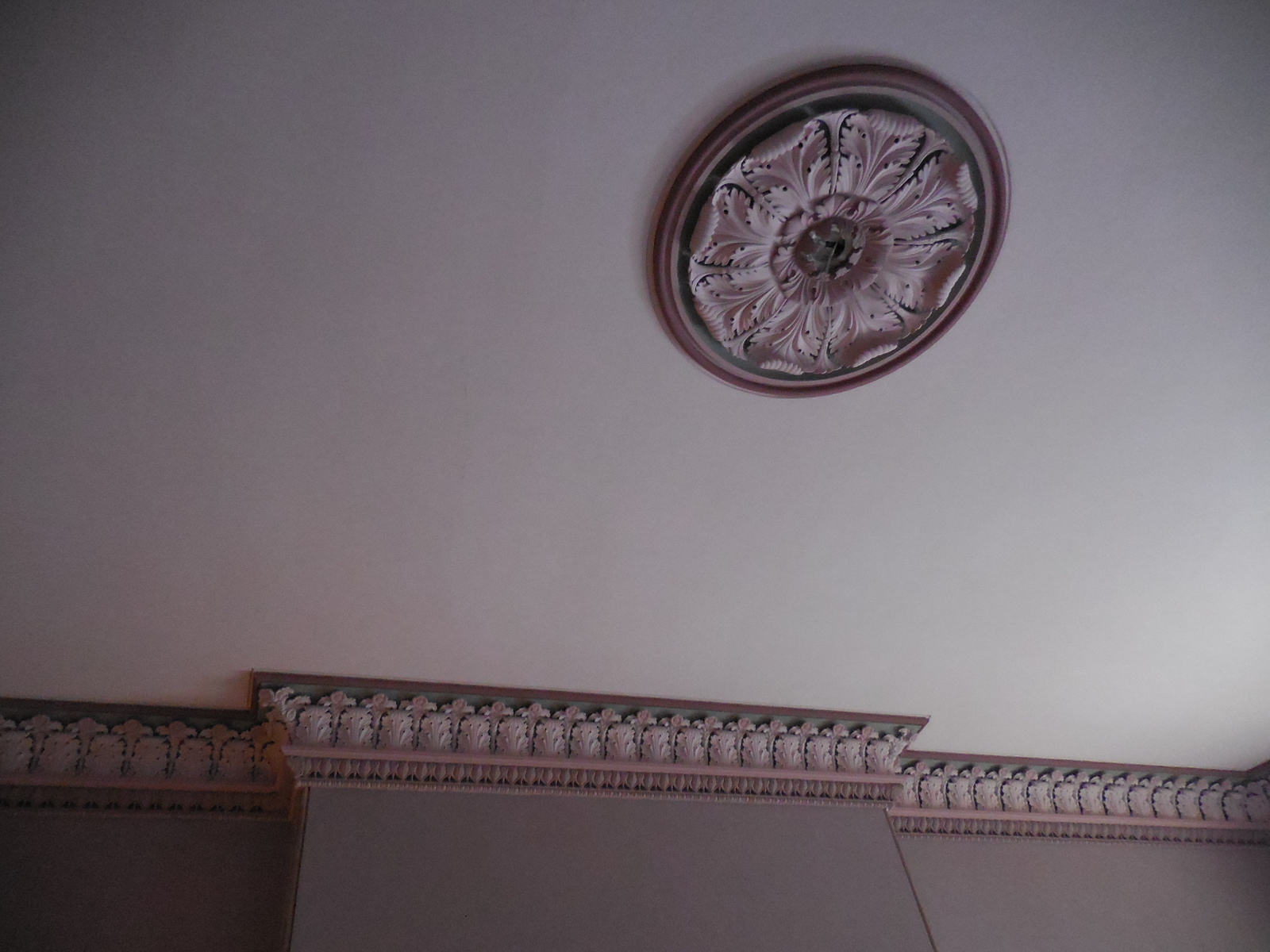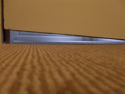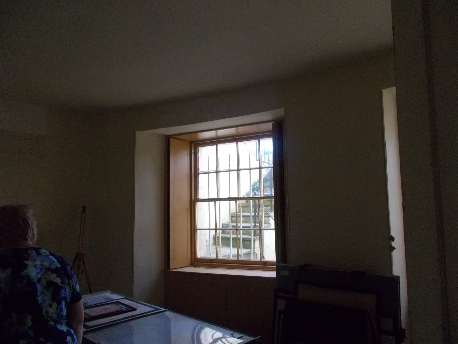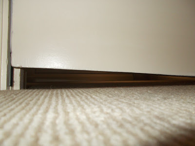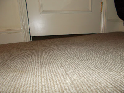 More minutes went by as we mused on the reason for the wonky carpentry. Finally, Victoria said, "Look! Look how the floor to this room slopes down. See it. The entire room's on a pitch. They had to cut the bottom of the door like that so that you could open the door. Cause the floor slopes up at that end. If the door weren't cut like that, you wouldn't be able to get into the room."
