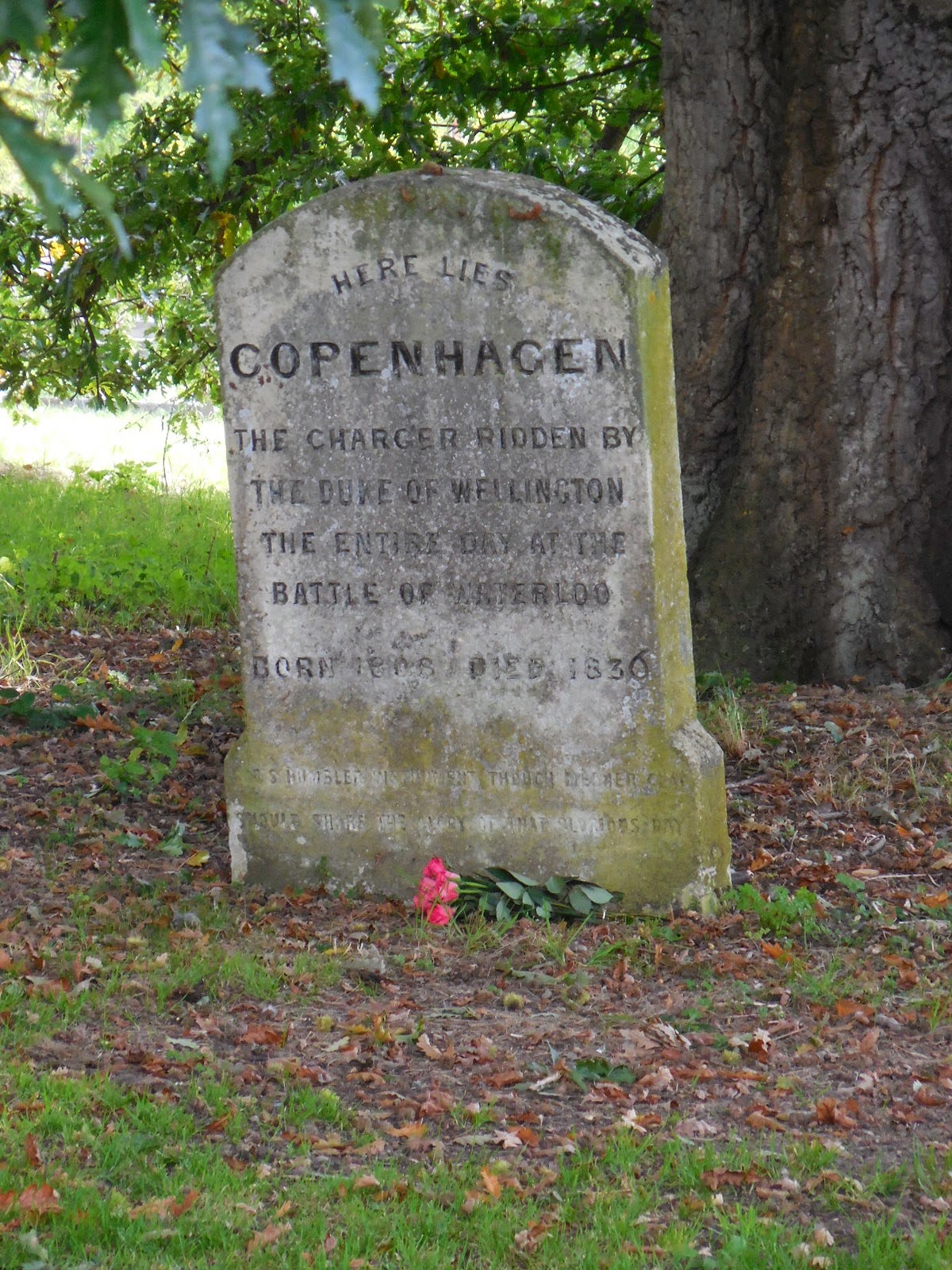 Heather King, a horse lover and our UK rep, wrote about the Duke of Wellington's mount, Copenhagen. Last September at the Duke's country home Stratfield Saye, we left roses on the stallion's grave.