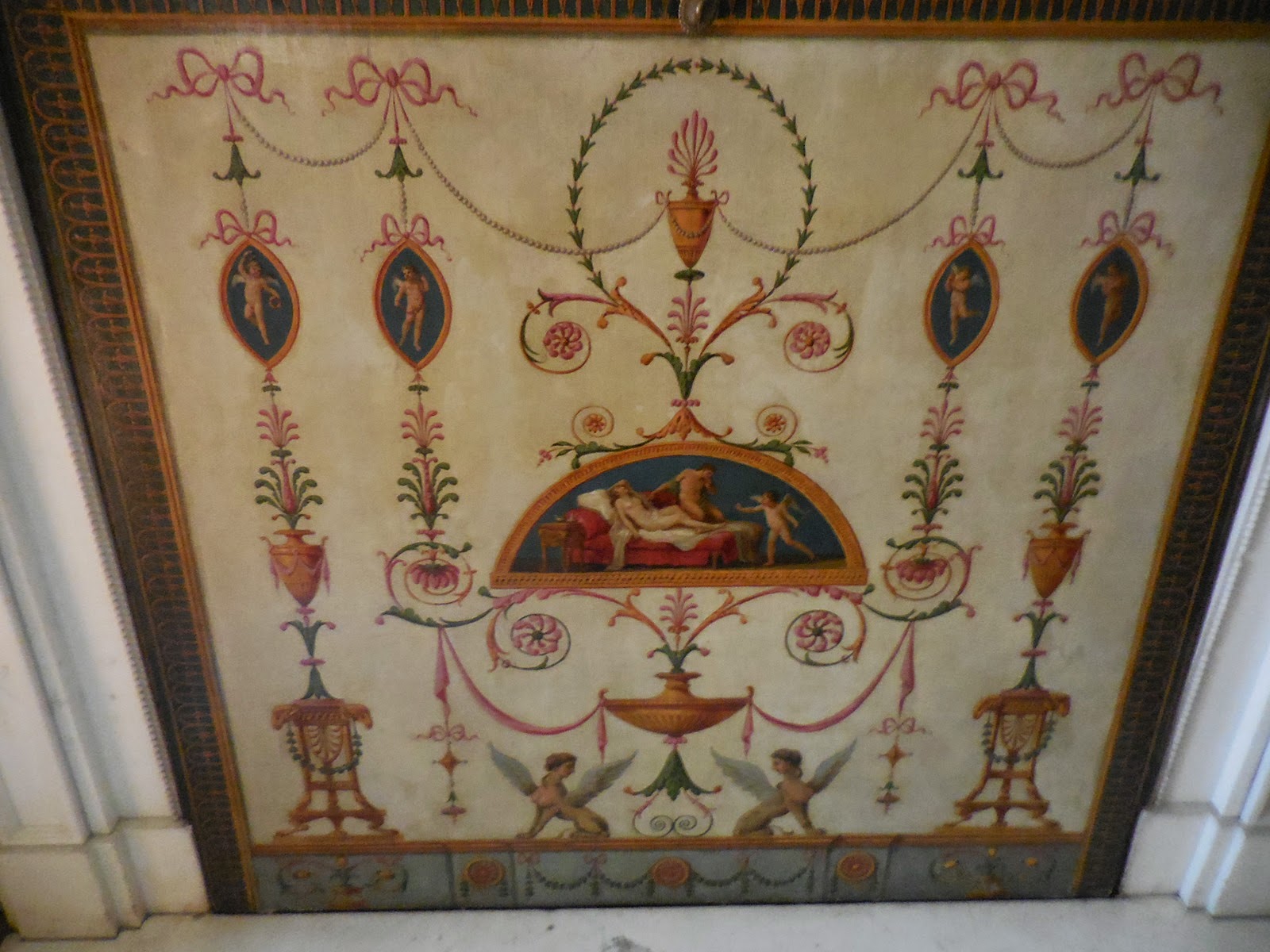Boucher's Tapestries were delivered to the house in 1776 from the Gobelins factory in Paris, though run by a Scot, Adam's countryman.The four large medallions in the tapestries (two seen above) represent the elements: earth, fire, air, and water.