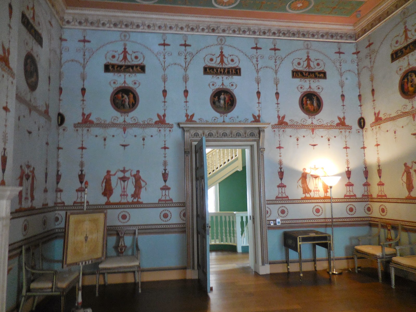 But I am getting ahead of myself! The approach to the house is suitably dramatic, viewed across a pond laced with water lilies in full bloom. Queen Elizabeth I visited the first manor house here after its completion in 1676. Thomas Gresham, a wealthy banker, built the house, Another wealthy banker, Sir Francis Child, hired Robert Adam to remodel it in 1761, and the current look - both inside and out - is very much that of the Adam period in all its glory. Adam had one section of the square house replaced with handsome Georgian columns, framing an open courtyard. The great house and estate passed down in the line of the Child banking family. Sarah Sophia Fane inherited the house from her grandfather, Robert Child; she married George Villiers (who added Child to his surname) who became the 5th Earl of Jersey. Thus the house for almost 200 years, belonged to the Earls of Jersey. The 9th earl presented it to the National Trust in the 1940's.