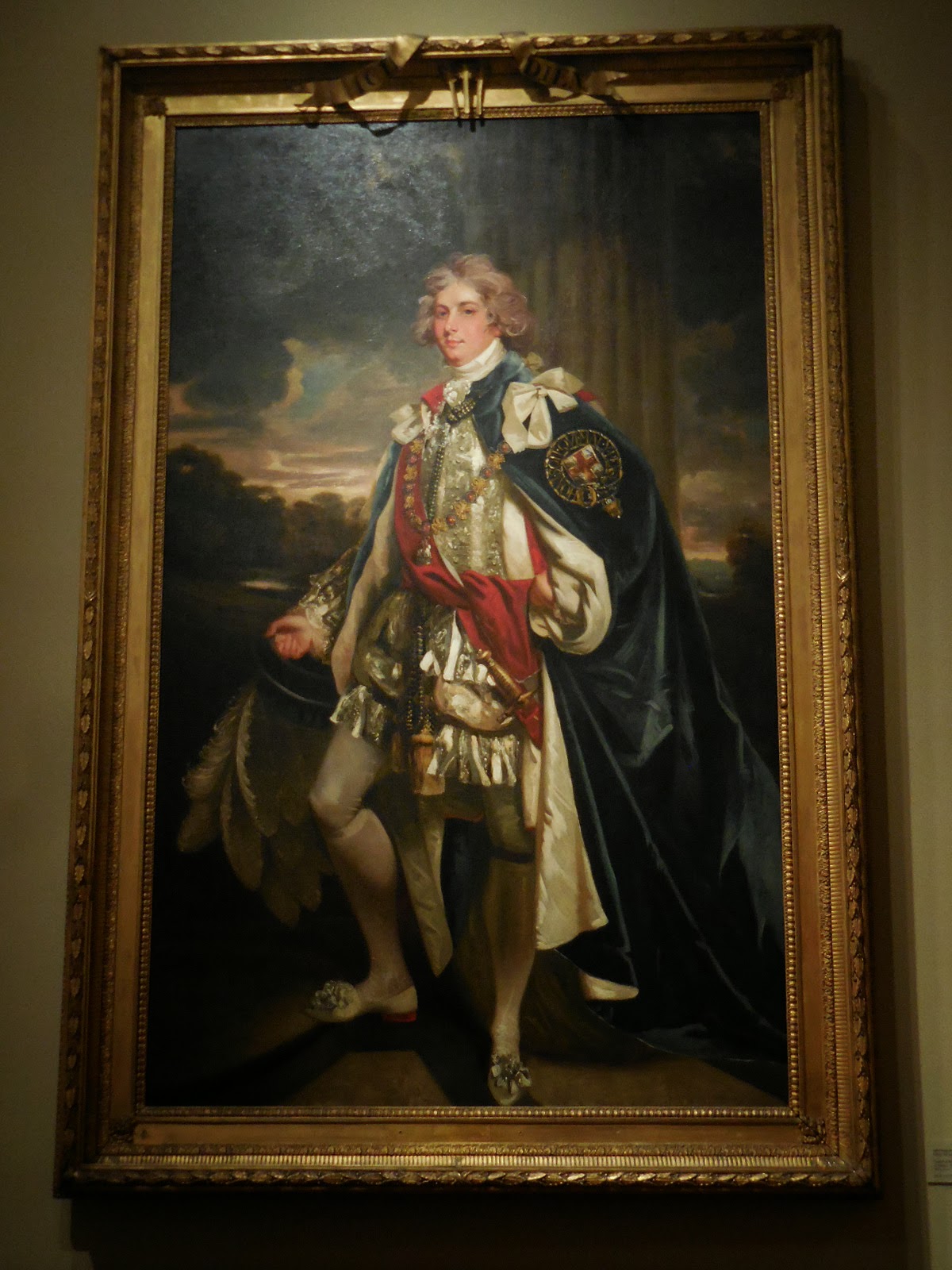 Hoppner (1758-1810) was one of the successors to Reynolds and Gainsborough for royal and aristocratic portraiture. He was born to a family from Bavaria that served the British court. Young Hoppner trained at the Royal Academy. The Prince's attire is portrayed colorfully in the grand tradition.