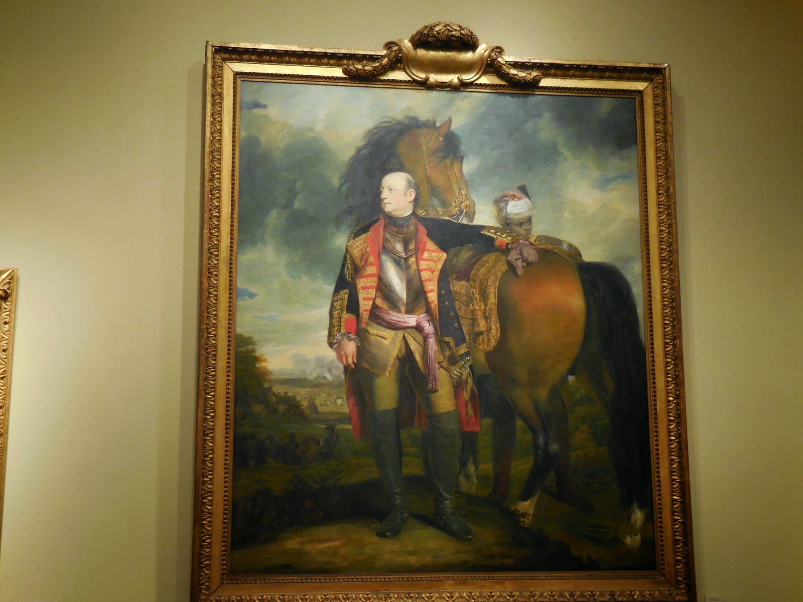Reynolds' competitor, Thomas Gainsborough, (1727-1788), is represented by this fine military portrait with a beautiful landscape background. Honywood was a colleague of the Marquis of Granby in battle. One can see the evidence of Gainsborough's admiration of the equestrian portraits by Van Dyke in this work.